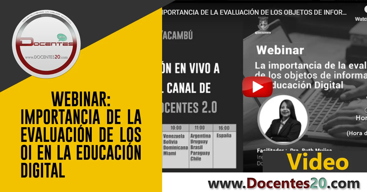 WEBINAR: «IMPORTANCIA DE LA EVALUACIÓN DE LOS OBJETOS DE INFORMACIÓN EN LA EDUCACIÓN DIGITAL » organizado por Universidad Yacambú, y transmitido en vivo por Docentes 2.0, a las 10:00 am hora Miami, el día 04 de septiembre de 2020.