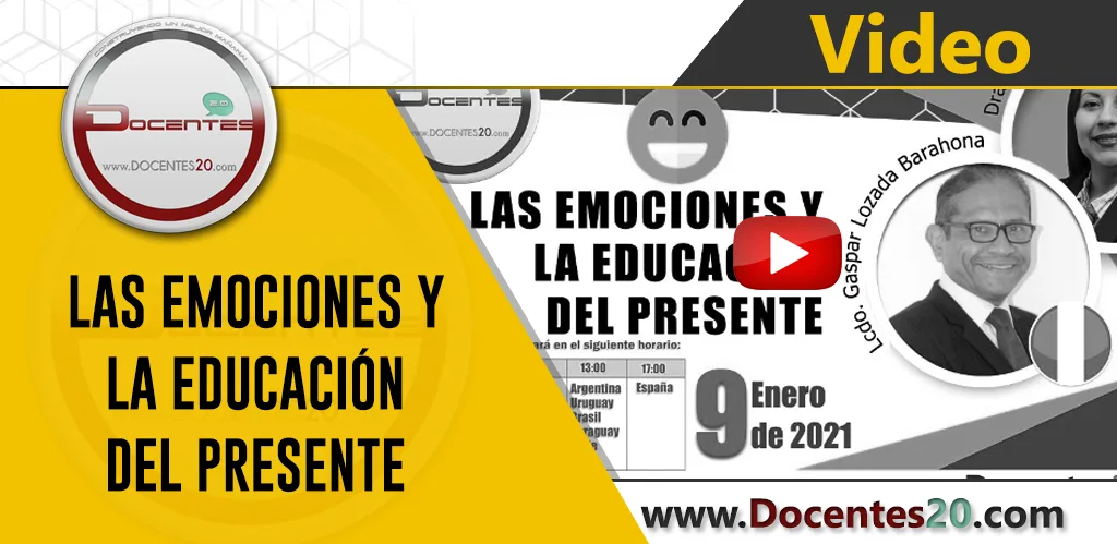 WEBINAR:»LAS EMOCIONES Y LA EDUCACIÓN DEL PRESENTE» organizado por Grupo Docentes 2.0 C.A., que se llevará a cabo, desde nuestra sala de conferencias, a las 11 am hora Miami, el día 9 de enero de 2021.