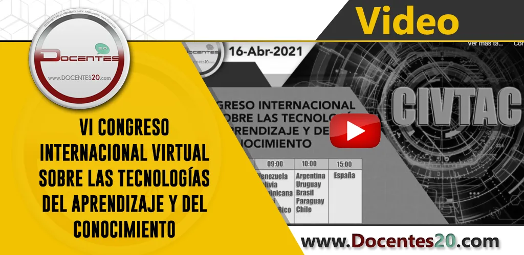 ✍ VIDEO: VI CONGRESO INTERNACIONAL VIRTUAL SOBRE LAS TECNOLOGÍAS DEL APRENDIZAJE Y DEL CONOCIMIENTO | DOCENTES 2.0 18/04/2021 por Ruth M. Mujica-Sequera VI Congreso Internacional Virtual sobre las Tecnologías del Aprendizaje y del Conocimiento (CIVTAC®) organizado por Grupo Docentes 2.0 C.A., que se llevó a cabo a nivel Online, a las 9am hora Miami, los días 16 y 17 de abril de 2021.