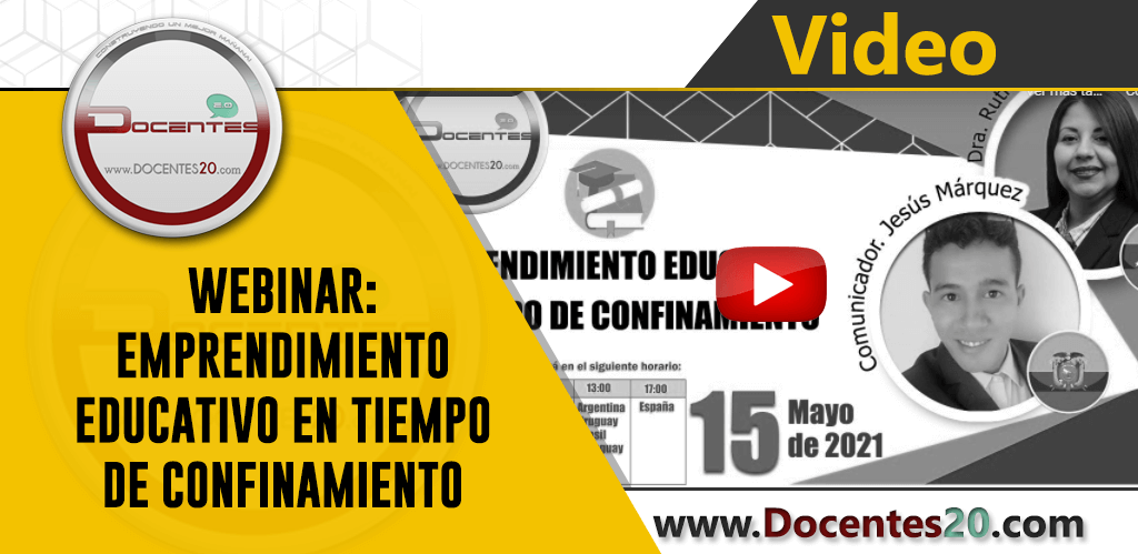 WEBINAR:»EMPRENDIMIENTO EDUCATIVO EN TIEMPO DE CONFINAMIENTO» organizado por Grupo Docentes 2.0 C.A., que se llevó a cabo, desde nuestra sala de conferencias, a las 11 am hora Miami, el día 15 de mayo de 2021.